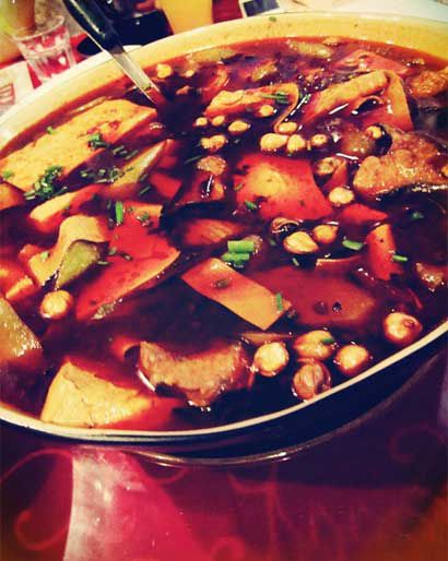 特色菜“江湖一锅鱼”,用一个40厘米左右的粗陶盆装着,香浓嫩辣的大锅炖鲶鱼配上莴笋豆腐丝什么的,想想就流口水。翼栈还有各种石锅菜,在湘西风格上进行了改造,混杂着各地的特色,运气好的时候还能赶上刚从外地回来的驴友分发各种特色小吃。最“天下一家”的是,如果你提前预订,他们甚至可以给你做两张美味的比萨。