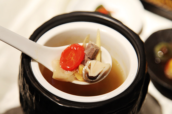 汤品独爱高棉的微笑,点这道汤完全是冲着名字去的,让人想到柬埔寨吴哥窟那些面带宁谧而神秘微笑的佛像。喜好酸辣和菌类,这道汤刚好能满足我的需求。口感有点类似于泰国的冬阴功,但口味又没它那么极致,有种循序渐进缓慢悠长的感觉。