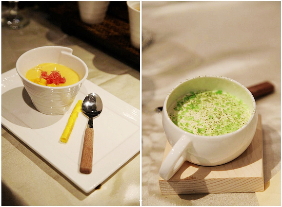 茶水男四种女三种,女茶分别是薰衣草红茶、洋甘菊茶、洛神玫瑰,颜色由淡入浓,味道由轻至重,其中尤以洛神玫瑰深得我心,酸甜适中花香怡人。别小看这三盏茶,腔调感一下就出来了,一顿“轻奢餐”就此拉开帷幕。