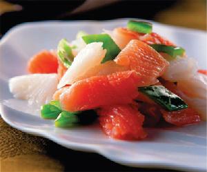 他各种食用菌类、新鲜果蔬、大豆及再制品。“大五荤类”食物绝对禁用,同时在烹制过程中“小五荤”也不让使。也就是说,平常调味的葱、姜、蒜、葱头、韭菜等带有辛辣、且有壮阳作用的调味品和青菜,在功德林的菜肴中是绝对不能用的。不过,不用这些调料,却并不能说素菜就没了滋味。就说十八罗汉这道菜。相传有一寺院的和尚们下山化缘,回来每人化缘的食物都很少,都不能独炒一盘菜。一个和尚说:“合起来炒,不就够了。”没想到,出锅后味道极佳。众和尚都说:“好菜好菜。”给这菜起个什么名字呢?有个聪明的和尚数了一下周围的人数,正好十八个人,就说:“叫十八罗汉吧。”后来,这道菜传入了民间,随之又被引进餐馆。功德林饭庄的师傅们将原有菜肴的主料本着投料科学化、营养合理化的原则,重新调整搭配,使这道菜不仅色香俱佳、味足爽口,而且营养丰富。十八罗汉已成为食客到功德林饭庄用餐的首选菜品。