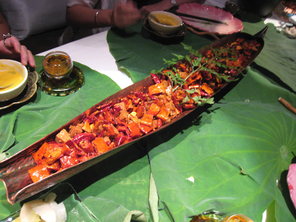 功德林有一道非常有名的“招牌菜”——“金刚火方”,它是将素食文化与佛教文化紧密融合而创制出来的。
