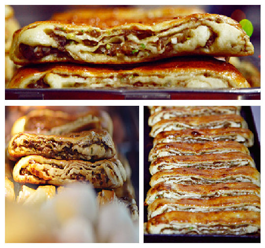 被整齐地码上刷上植物油满陷肉饼,安静的模样像午后阳光下写故事的姑娘一样,温和得没有脾气。面团发酵、和面、拌肉陷、刷豆油、塑面形、切割成条、码整齐、进烤箱...高温将肉汁栓在了面团的每一寸肌理,一口咬下去,在第一时间吃到了表皮的脆,接着细细咀嚼便会尝到裹着肉汁的柔软。玻璃橱窗里的小肉饼,沐浴着暖暖的光,美好的一天从这里开始。