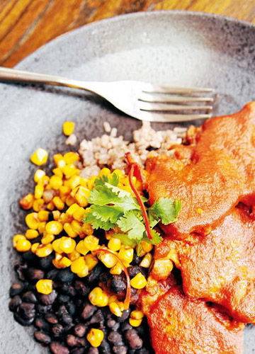 盘中当然也少不了玉米粒,主要作用是解腻。另外还配了黑豆和墨西哥炒饭,这炒饭格外特别,炒前先用鸡汤蒸熟的泰米软糯自然,其中透着鸡汤的滋味,入口留香。另外,煎玉米脆卷、嫩鸡肉汤、翡翠玉米卷和塔可拼盘也都有特色,足以代表舌尖上的墨西哥。
