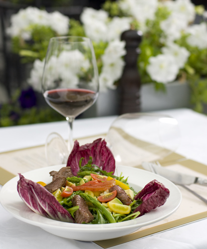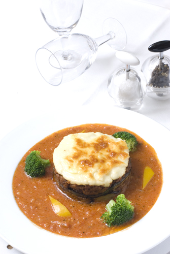 “希腊美食离不开番茄酱、酸奶、柠檬汁等,是名符其实的‘酸’煮意。”杨厨师长在介绍美味时如是说。杨厨师长推荐的头盘希腊特色饭卷和主菜木莎卡中都有牛肉,在介绍配酒时,他说可以边饮用乌宙(Ouzo)或麦迪莎(Metaxa)配着牛肉一起食用。