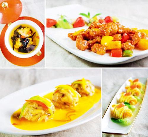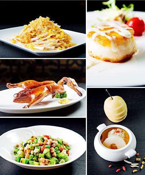 金汤波士顿龙虾钳:波士顿龙虾是龙虾中的名品,因生活于寒冷海域,生长特别缓慢,10年左右的时间才能增加500克左右的体重,两个硕大的虾钳是其明显的特征。虾肉营养丰富,高蛋白、低脂肪,有维生素A、C、D及钙、钠、钾、镁、磷、铁、硫、铜等微量元素,尤其富含不饱和脂肪酸,营养物质易被人体消化和吸收。用制作燕鲍翅的金汤烹制龙虾钳,汤汁颜色金黄喜庆,味道鲜美醇厚,虾肉紧实劲爽,口感味道皆为上乘。