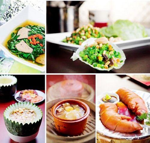 迷你八宝冬瓜盅:八宝冬瓜盅是夏季的一种应季汤食,冬瓜有利水的作用,用虾仁、瘦猪肉粒、火腿粒、瑶柱粒增鲜调味,蒸熟而食。汤水鲜美清香,味道丰富饱满,馅料与瓜茸均可食用,可汤可菜,是一道极具时令特色的历久不衰的传统经典粤菜。