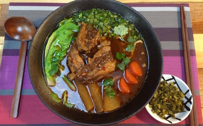 一个接近四百平米的空间,一对爱好广泛的台湾夫妻,除了在这里卖咖啡,做甜点,还研制了正宗的台湾牛肉面。老板向母亲学到了记忆中牛肉面的味道,为了更好地体现面的灵魂,所有盛面的钵体也亲自从台湾背回来。