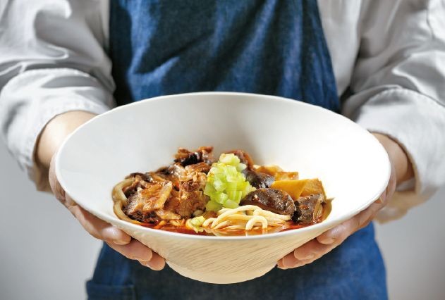 大碗指牛腩面,精火慢炖数小时的牛腩汤浓肉嫩,搭配的萝卜更是入口惊艳,微韧而又入味,绵软却又不烂,透着肉汁的浓香滋味。小碟指红油手剥笋,玲珑精致滋味不凡的餐前小碟。采选鲜嫩笋尖经红油调香,虽辣但未遮盖笋尖特有的清香,虽为小碟,却以轻盈之味令人印象深刻。联手台湾艺术家范姜明道先生,打造出专属于“大碗小碟”的餐具设计,很有意思。