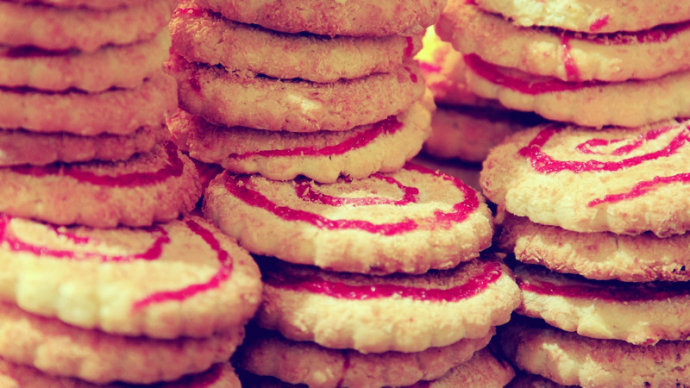 椰丝黄油饼:买回来准备夹酸奶自制果酱盒的。长相类比桃酥,表面有烤的金灿灿的椰丝和红果酱涂的一个螺旋,一片饼就像一个小太阳。喜欢椰丝球/桃酥/果酱盒的话,别错过这包小太阳。