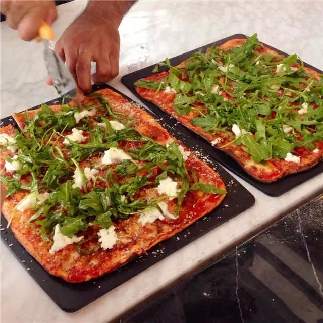 卡拉布里亚,帕达纳山羊奶酪,罗勒番茄名列畅销榜前三名,意大利南部特产San Marzano梨型番茄制成的打底番茄酱组合松子青酱,山羊奶酪,红酒洋葱...味道巧妙融合,层次丰富,软硬程度恰到好处。为了庆祝进入北京市场,店家特意研发了一款烤鸭披萨,创意十足,有兴趣的话可以试试。