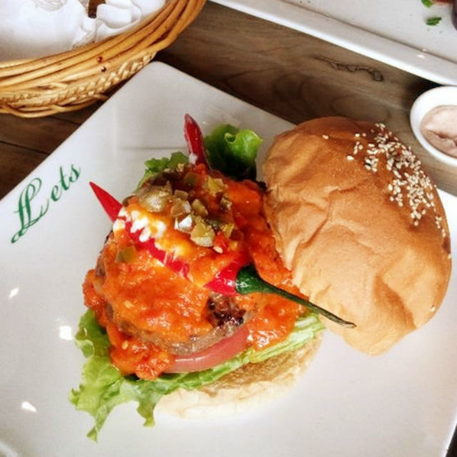 现在吃什么都追求特色,BIG或者MINI在吃货界也算是常见的了。LET’s buger plus是LET’s系列里最早开的店了,之后又开了seafood和pasta两家店,蓝色港湾这边是分店。店里装潢简洁、大方,不失格调。美式汉堡个头很大,外形朴实,肉饼的厚度着实考验嘴巴的张力。