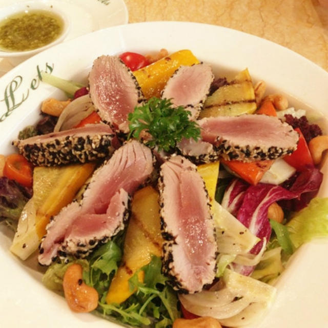 以龙虾、贝类、鱼和牛肉等为主的地中海菜系是ARIA的主打菜肴风格,澳洲龙虾、牡蛎、煮大虾、扇贝和鱿鱼等各类海鲜,配以传统小料和柠檬品尝,让人没齿难忘。此外,商务午餐堪称京城最棒,其中沙拉最受欢迎的是一道Italian Dress,以酸甜为主,入口清爽,油醋汁沙拉很新鲜,两片烟熏三文鱼夹住蟹肉沙拉,味觉层次分明,余味绵长。
