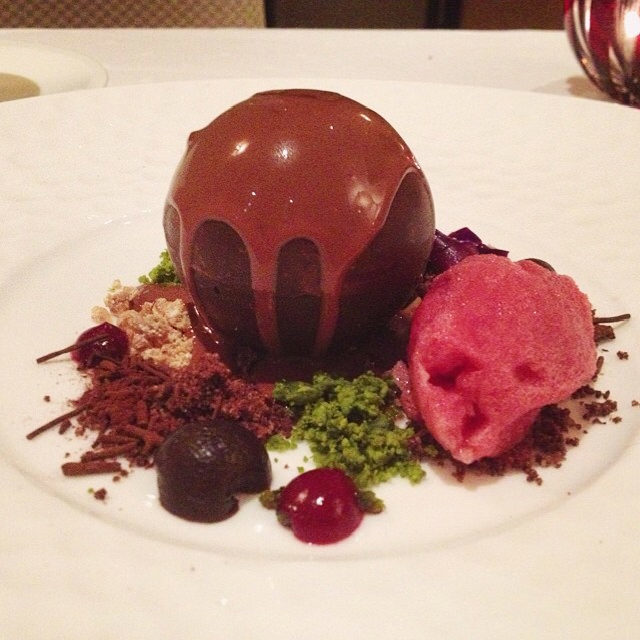 Mio的意大利菜尽显高贵,从焦糖鹅肝搭配分子的脆皮橙,自制墨鱼意大利面配帝王蟹,佛罗伦萨地区特色面包scechatta ,西西里咖喱风味海舫鱼配芝麻菜汁,到最后的Rum baba配香草冰激凌。道道经典,值得回味。