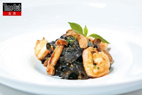 不去威尼斯,在意味轩也能尝到地道的威尼斯风味,比如这道水城特色墨鱼汁面,与普通的意大利面迥异,自制的宽面条柔韧爽滑,在墨鱼汁儿的浸染下呈现出乌亮的黑色,乍一看有些突兀,搭配上虾肉与蘑菇倒也自称一派风景。