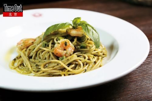 这款意面的味道很别致,秘密都在餐厅特制的紫苏酱里面,酱汁有鲜紫苏香草、烤好的松子、蒜、芝士粉等大的极碎,配上个大肉鲜嫩的虾仁,淋在面条上就大功告成了,这款意面口味比较清淡,如果喜欢紫苏香味,那你一定要试试它。