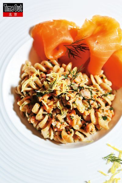 全麦螺形意面配烟熏三文鱼及番茄香草汁(238元)