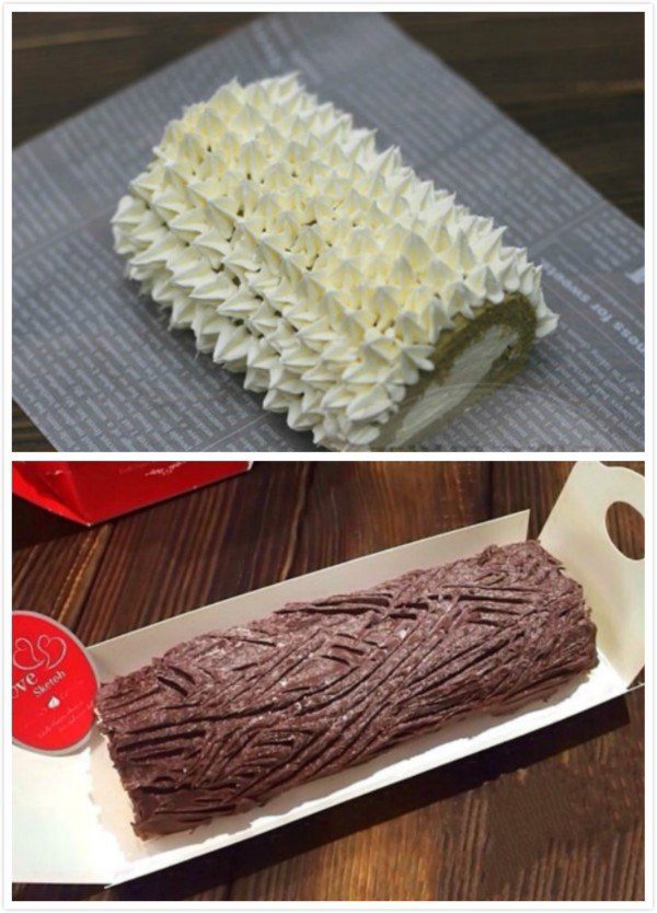 他家的甜品普遍很有型,蛋糕卷更是别致,榴莲卷有白色小刺猬的即视感很cute,黑巧克力树根和榛果树根不要太形象逼真,虽然黑巧用的很厚重,配淡淡的奶油,不会甜腻反而是根本停不下来。