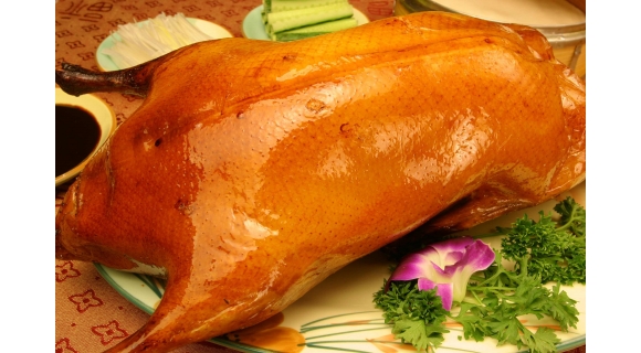 烤鸭是享誉世界的北京著名菜式,用料为优质肉食鸭北京鸭,果木炭火烤制,色泽红润,肉质肥而不腻,外脆里嫩,被誉为“天下美味”。如今挂炉烤鸭和焖炉烤鸭是北京的烤鸭两大流派。