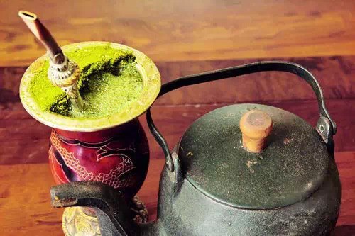 马黛茶是阿根廷的特色,据说这种茶是被阿根廷誉为“国宝”、“国茶”,在当地语言中“马黛茶”就是“仙草”、“天赐神茶”, 因为它含有多种营养成分,不仅可以清除胆固醇、降低血脂,还能促进血液循环、提神醒脑等等,所以阿根廷人认为“马黛茶”不是一般意义上的茶,他们每人每天都在喝,从小孩到老人,从都市到乡村,甚至有“宁可无肉不能无茶”这样的说法。马黛茶的喝法很有讲究,不像喝一般的茶或咖啡,要先用特制的吸管、勺子和过滤器三合为一的工具,放进冲了水的茶里先吹一口气,然后再慢慢的吸,可以轻轻拌一下,但不可经常搅拌。喝起来有点像苦丁茶的味道,如果觉得苦,可以加点砂糖。吃烤肉喝马黛茶可以消暑降火,看来这才是真正的“鬼佬凉茶”。