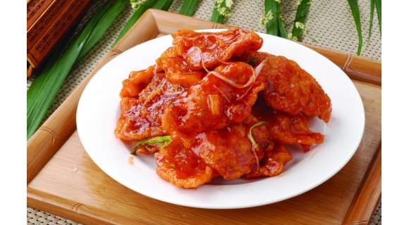锅包肉是哈尔滨道台府菜创始人郑兴文首创的东北名菜,至今已有百年历史。它的做法是将猪里脊肉切片腌入味,裹上炸浆下锅炸至金黄色捞起,再下锅拌炒勾芡即成。成菜色泽金黄,外酥里嫩,酸甜可口,加上吃多不油腻的特点,很适合夏天食用以达到开胃增食欲的目的。