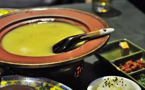 由高圆圆和朋友开办、主打黔贵风味的餐厅。地方不大,但简单的装饰、艺术感的壁画以及临窗的舒适沙发,非常舒适。酸菜炒汤圆,外皮焦黄酥脆,内里的黑芝麻馅软滑香甜,配上酸菜,口感丰富。
