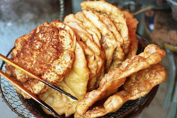 光这烧饼就有七、八种,麻酱烧饼、马蹄烧饼、吊炉烧饼、螺丝转烧饼、油酥火烧、糖火烧、豆馅火烧;而炸货有油条、薄脆、油饼,还有一种现在已经没有了,做法儿是把油饼略微炸一下,撕开一条缝,磕入一个生鸡蛋,封上口再炸,说起来有点儿象现在的鸡蛋灌饼。