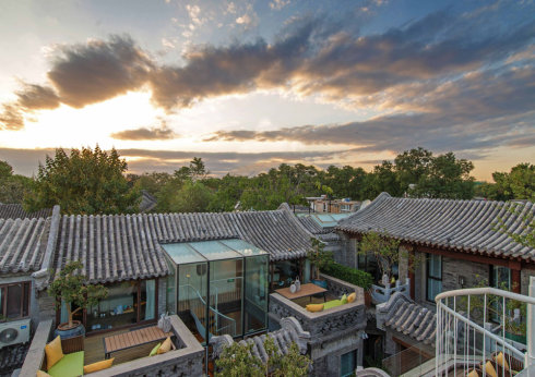 乐在. 南锣四合院精品酒店坐落于北京最具标志性、知名度的旅游胡同——南锣鼓巷的沙井胡同里,穿过喧闹、市井的南锣主巷到达酒店,满目的青砖灰瓦、草木葱茏席面而来,瞬时就可感受到恬静、古朴、大气的京城四合院风情。有别于一般四合院酒店,乐在. 南锣在保留了传统趣味的同时,更引入了新的设计理念及现代设施,使空间更加大气、舒适且富设计感。酒店院落总体占地过千平方,其历史可上溯至百年以前。客房区位于春夏秋冬四个小院中,共有房间十二间,每间客房均取名于中国的传统节气,其室内装修设计及用品依照每间房间原始建筑不同展开,间间不同,各自精彩。