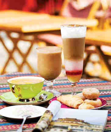 烈酒、鸡尾酒、葡萄酒、咖啡、果汁、茶、奶昔、雪泥等等饮品几乎让人眼花缭乱。健康一些的则是各种鲜榨果汁:桔汁、苹果汁、西柚、番茄、蔓越莓,每杯30元。卡布奇诺35元/杯,口感纯正。还有110元的套餐,两杯咖啡或茶和甜点拼盘,包括巧克力布朗尼、经典芝士蛋糕、新鲜烤制的巧克力蛋糕。餐厅经理Lee也许会亲自送餐出来,并给你一个丝毫不吝啬的微笑。巧克力布朗尼的口感惹人沉醉,绝不仅仅是装盘漂亮那么简单,享受一个微风中的三里屯广场的下午,在城市的中心回顾下自己的内心。
