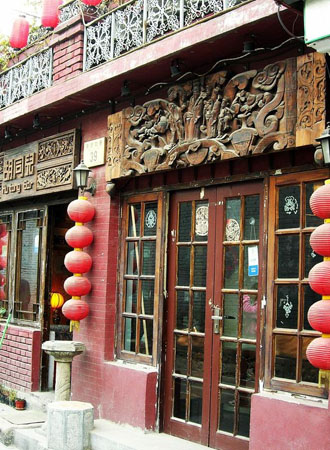 东直门簋街靠西侧进入胡同,往里走不远,看到这家大红大绿、雕栏画栋的四合院餐厅,以广聚天下驴友著名于世。小院里没有老板亲自坐镇,还是透着江湖气。几乎所有的服务员都是男性,从阳光型到深沉型都有,女顾客到这里总能找到自己青睐的那个。