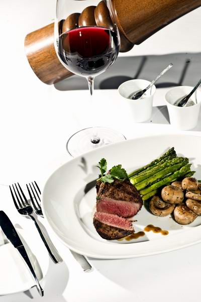 香草烤牛柳,香草加入了牛骨髓与面包屑两种元素。面包屑增添了脆脆的口感,与牛排的润滑感形成一种特别的反差,而牛骨髓则加重了牛排的肉味。香草的独特口感使牛肉增添了一些清新的味道,不禁会令人联想到草原上的油油青草。这道菲力牛排,配上赤霞珠,是绝佳之选!