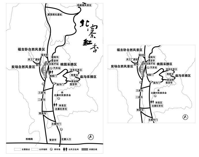 当地人都说最早村子里只有两棵红杏树,后来经过多次的嫁接繁育,才成就了现在这番壮观景象,而当年那两棵红杏树现在也都是百岁高龄了。奇特的是,这里的杏只能在某一片山地上生长,即使只是将它移出山口,味道也就发生了改变,酸涩难咽;惟在北寨,红杏酸甜适口,口感丰腴,大有“桔生淮南为桔,桔生淮北为枳”的神奇。