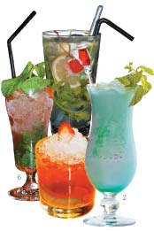 皇家驿栈在坊间最著名的一款鸡尾酒是很中国的“黄酒鸡尾酒”,曾经非常高调,被世界各地来看故宫夜景的游客奉为中国鸡尾酒的味道。但夏季喝黄酒鸡尾酒需要勇气,所以避开黄酒鸡尾酒,特推荐2010年夏季刚炮制出的“都市丛林”鸡尾酒。此款通体淡雅白色,带有冰激凌,所以最适合女性。调酒师将淡雅沁脾的绿茶冰激凌混合加入新鲜全脂牛奶,再浮上新鲜薄荷叶及薄荷酒。口感层层清凉冰爽,可消除夏日常见的口苦。