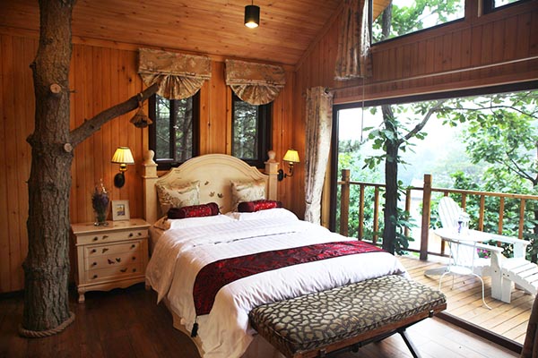 森林里的松鼠、鸟儿、蜜蜂、蝴蝶,高大的松树和盖在树上的小木屋……此情此景,不禁让人联想到童话里的森林世界。现在,北京密云云峰山景区就有这样童话般的树屋,不妨周末来树屋里住上一晚,隐居于山野,栖息于树上,听风声雨声鸟叫声。巨人花园、梦幻岛、小红帽、爱丽丝、皮诺曹……选一间以童话故事命名的树屋,站在阳台上,身边即是高高的松树,伸手就可摘到树梢上的松果,即使是内敛的人也难免会心生雀跃。