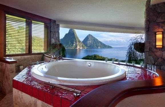 如果你的家身处高层,那么你可以参考一下圣露西亚酒店的这个浴室。有些风光,不止是卧室和客厅才能拥有。开放式浴室的设计让美丽的景色更大程度属于沐浴时候的私人时间。在床上欣赏风景已经厌倦了么?不如将风景头等位搬来浴室吧。