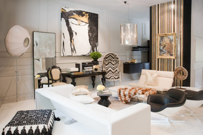 美丽优雅,奢侈豪华的一个高端室内空间设计。新鲜和谐统一的色彩搭配,时尚背景和漂亮的起居室装饰,现代和传统元素的完美结合。