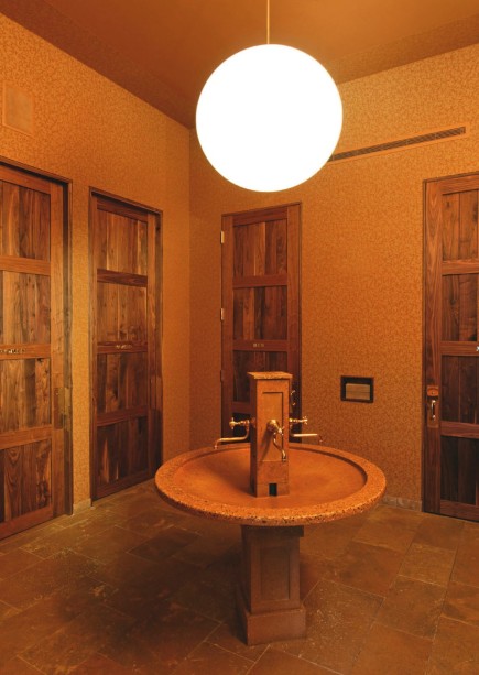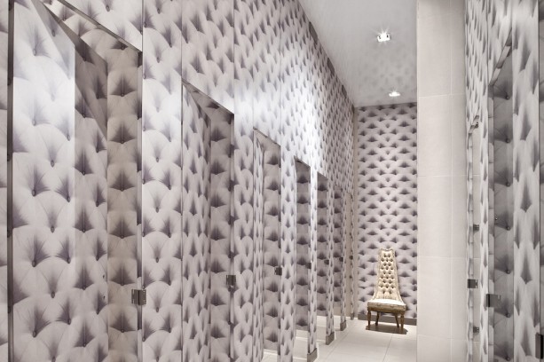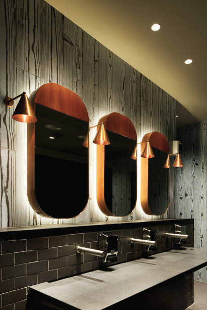 洗手间位于保罗·卡亨的The Publican餐厅,装饰风格既清新又豪华,每个单间都装饰着奢华的壁纸和镀金的摆设,房屋中间是一个像公共喷泉一样可转动齿轮的水槽,以及毕格罗牌的肥皂和清洗剂。