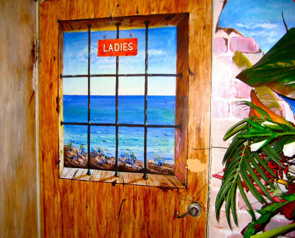 意大利餐厅洗手间门口手绘,创意真心很赞。