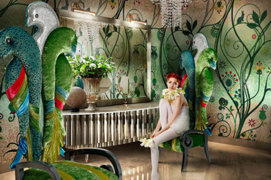Sicis公司是意大利最优秀的马赛克生产商,以设计理念著称,将精细的人物花鸟和历史题材演绎得淋漓尽致。绿色的墙壁带来春天的气息,把房间打造成室内花园。