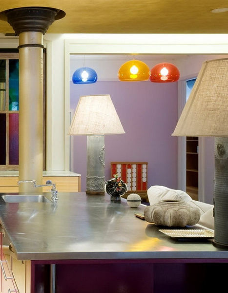 鲜艳饱满的色彩本来就充满了活力,如果不想大面积地使用色彩系家具,简单的几盏色彩吊灯就可以打造出意想不到的效果。