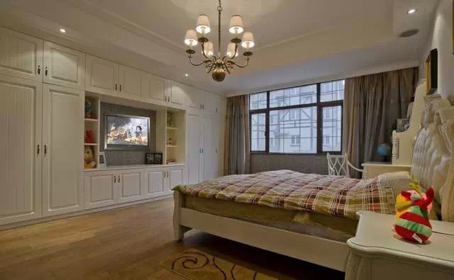 在床上想看电视,睡觉时又不想被反光照到,来!内嵌电视柜衣柜组合满足你!