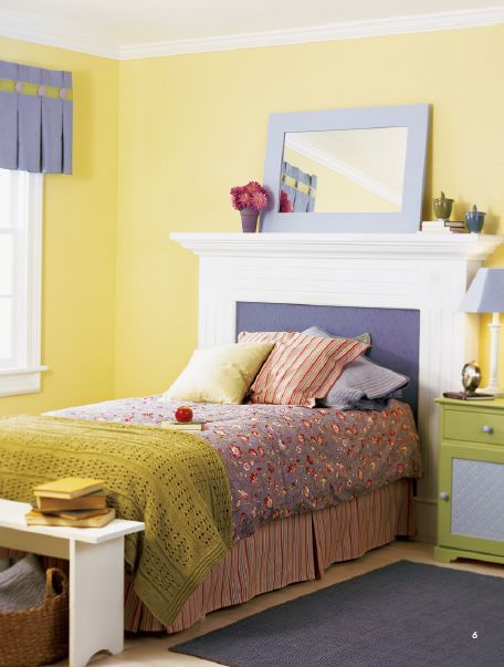 老房子里被废弃的壁炉在组合搭配家具的时候是个累赘,但是在这间卧室里,却借景发挥巧妙地利用了废弃的壁炉作为床头的背景板。用夹板将炉膛封闭,再附上一层漂亮的壁纸。随后,把床挪到适当的位置,并在壁炉架上摆上一些温馨的装饰品,比如书籍和镜子。壁炉就被改造出全新的用途了。