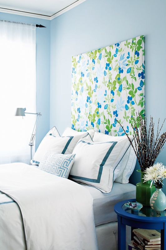 灵感之处:用油画板做衬制作的床头背景墙可以随心所欲选择自己喜欢的图案,棉絮加花布柔软舒适,是非常实用的背景墙。