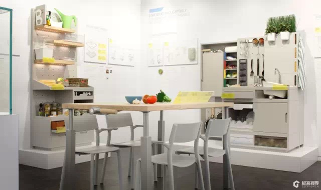 宜家在米兰做了个展览,推出了未来厨房计划。10年后灶台、冰箱将从世界上消失,我们需要的只有一个架子和一台桌子。