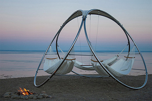 这款三人吊床(Trinity Hammocks)结构上相当于是用三个圆环拼在一起变成了支架,有着一种非常诱人的数学之美。而且,虽然看上去它会滚动,但事实上它稳固得能接受最重量级的“震动”于是,给每个圆环设置一个吊床,无论是在沙滩还是公园,想必都能成为最棒的休息场所。唯一的缺点可能在体积上,即便支持拆装,这么大的环运输起来也不会方便。
