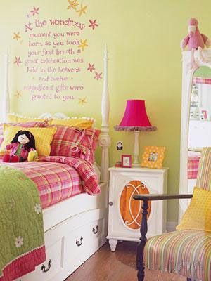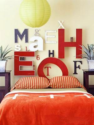 这估计是最有创意最简单的床头设计了。用一种欢快的字体在床头的位置题写一句孩子最喜欢的箴言。