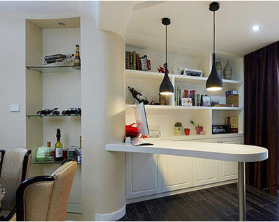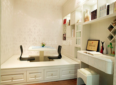 矮书架或许方便取书和放书,不过將书柜设置高些,会让视觉直达天花板,这样就会产生空间很大的感觉!