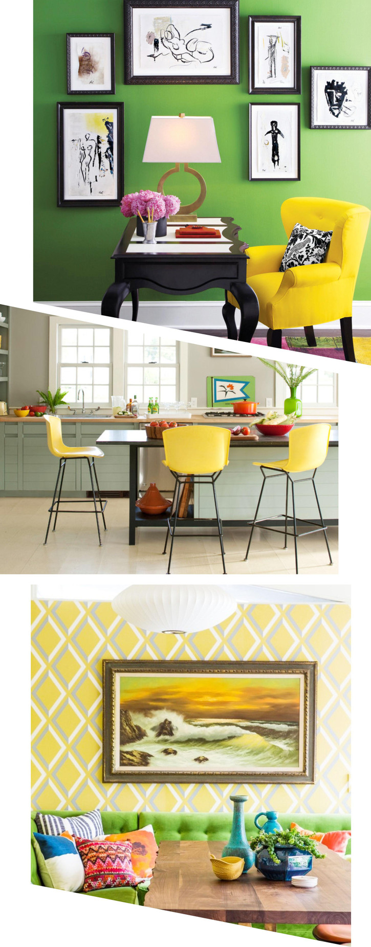 试想,将这两种颜色运用在室内艺术中,当明丽黄遇上翡翠绿,用温暖调和清新,良辰、美景、赏心、乐事,四者皆具!在这个冬天里,我们怀念春与秋为我们带来的柔情蜜意,为寒冷的冬天增添一抹亮丽的色彩。