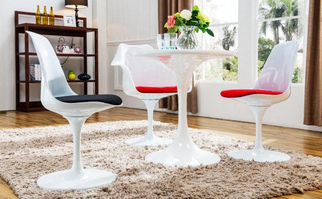 Tulip Chair 郁金香椅,形状浑圆优雅,是芬兰设计师 Eero Saarinen 最经典的作品之一, Eero Saarinen 透过这张椅子的设计试图让椅脚变得更简洁,摆脱传统椅子四个支撑脚的结构,使人们坐在这张椅子上腿部有更多的活动空间。同时,Eero Saarinen 也注意到了美观的设计,Tulip 形如一朵浪漫郁金香,也似乎像是一只优雅酒杯。