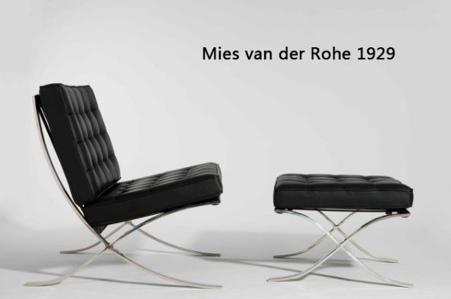 巴塞罗那椅由密斯 . 凡 . 德罗 ( Mies van der Rohe ) 在 1929 年巴塞罗那世界博览会上,为了欢迎西班牙国王和王后而设计。它由成弧形交叉状的不锈钢构架支撑真皮皮垫,非常优美而且功能化。两块长方形皮垫组成坐面(坐垫)及靠背。椅子当时是全手工磨制,外形美观,功能实用。时至今日,巴塞罗那椅已经发展成一种创作风格。