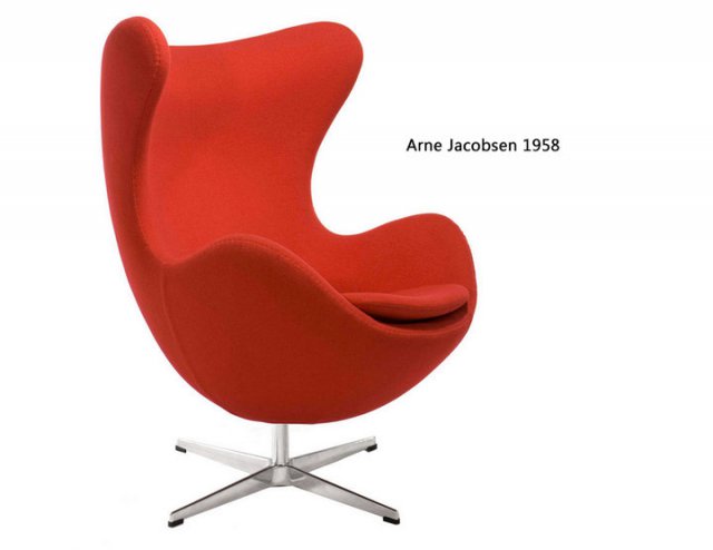 1958 年,Arne Jacobsen(纳 · 雅各布森)为哥本哈根皇家酒店的大厅以及接待区设计了这个蛋椅。这个卵形椅子从此成了丹麦家具设计的样本。蛋椅独特的造型,在公共场所开辟一个不被打扰的空间——特别适合躺着休息或者等待,就跟家一样。